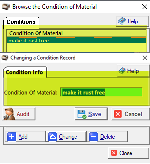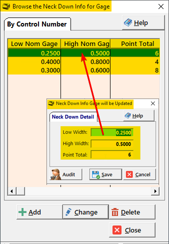 New defect codes can be added, or any existing defect codes can be modified by click on change.