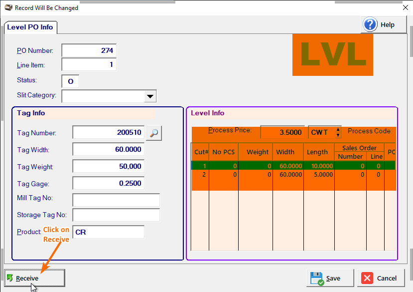 Locate the correct processing PO no from the list displayed with any field attributes provided as tabs and then click on .