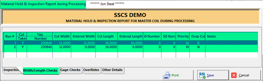 The production report can be generated to view the complete details of the tags number, gage, width, length, product,