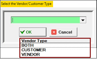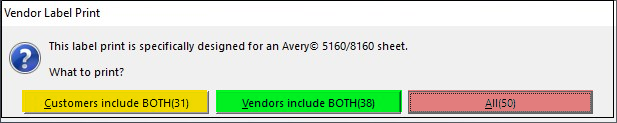 the window will pop up for action either to print customers or vendors or ALL